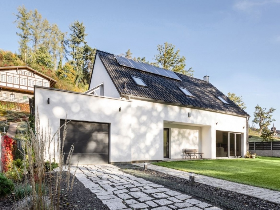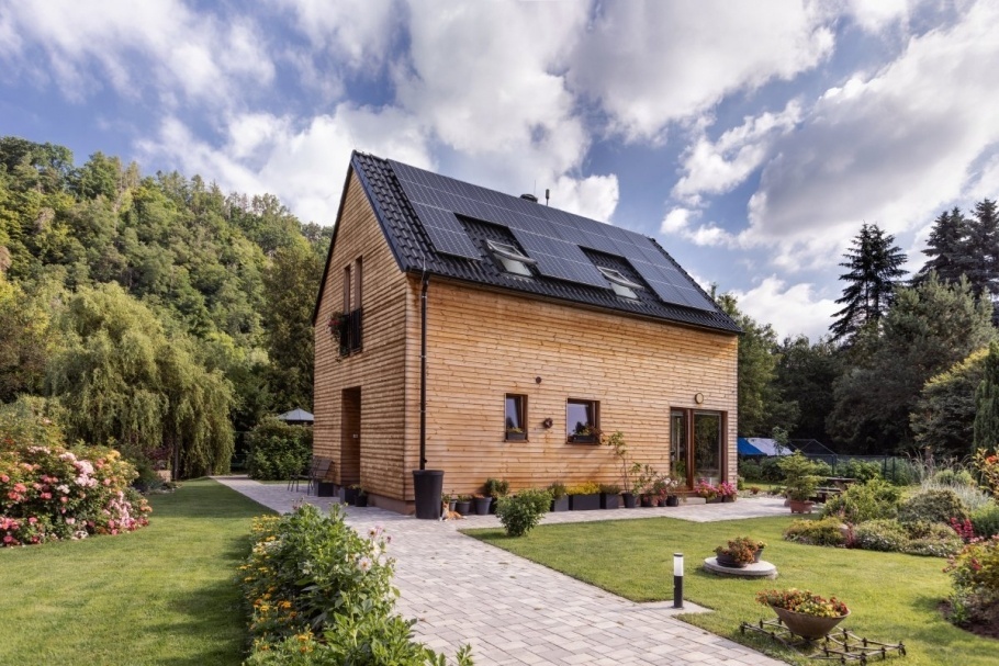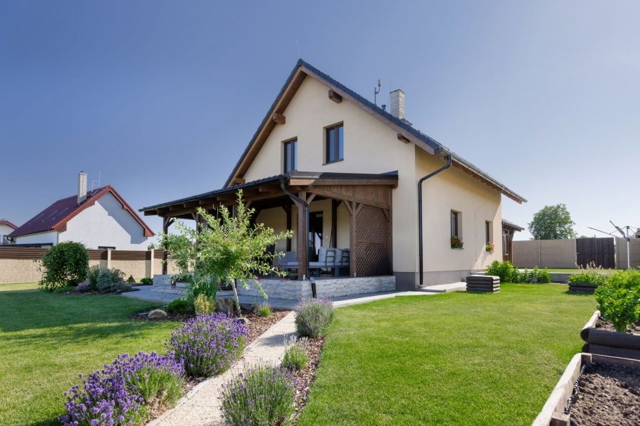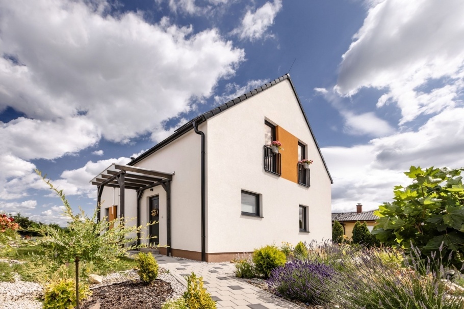 Moderní nízkoenergetická dřevostavba s podlahovou plochou 104 m2 nedaleko Mělníka.