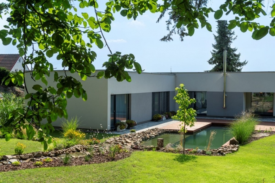 Manželé si postavili krásný bungalov u Brna s dispozicí 4+kk. Po zkušenostech s dřevostavbou i zděným domem se rozhodli znovu pro dřevostavbu. U domu mají velikou zahradou, na které si vybudovali i koupací zahradní jezírko. Dům je podsklepený a má moderní interiér plný světla.